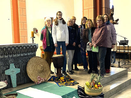 Ein Team aus der katholischen Gemeindereferentin Christine Krempel und sieben Frauen gestaltete den Gottesdienst. Der Altar war mit Tüchern in den Farben der nigerianischen Flagge und vielen Dingen aus Afrika geschmückt worden. Alle Ankommenden wurden in der Kirche mit einem Stein begrüßt. Im Gottesdienst wurden den Besuchern die Geschichten von drei Frauen aus Nigeria nahegebracht. Man konnte erfahren, wie diese Nigerianerinnen trotz aller Widrigkeiten ihr Leben im Vertrauen auf Jesus meistern. So können sie aus ihrem Glauben immer wieder Hoffnung schöpfen.