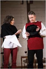 Mit verschiedenen Liedern, Texten und großer Spielfreude luden beide in das Wohnzimmer Katharina von Boras und Martin Luthers ein und gewährten dabei so manchen Einblick – in die Zeit der Reformation, in die Lebenssituation der Menschen damals zwischen Hunger, kirchlichem Aufbruch und den ersten Bestrebungen nach Gleichberechtigung. Ihr 60-minütiges Programm "Morgenstern – mit Katharina und Martin zu Tisch" war sehr unterhaltsam und doch inhaltlich anspruchsvoll und wurde hochprofessionell dargeboten. Gesetzestexte und andere literarische Quellen, die verlesen wurden, machten die damalige Zeit besser vorstellbar und auch die Situation Katharinas, die als gebildete Nonne aus dem Kloster floh und sich damit auf die Stufe unverheirateter und damit quasi rechtloser Frauen begab. Auf der anderen Seite lernte man Luther kennen als den bekannten Reformator, dem die Überlegenheit des Mannes über die Frau sowie die geistliche Diskussion wichtig waren. Daraus ergab sich manch amüsanter Dialog zwischen Katharina und Martin, z.B. über die Schöpfung der Frau aus einer Rippe des Mannes – müsste da nicht der Mann eine Rippe weniger haben? Katharina beschließt, einmal nachzuzählen … Meist bleibt Luther keine Möglichkeit, als diese für ihn entnervenden Diskussionen mit dem Hinweis auf die Essenszeit abzubrechen.