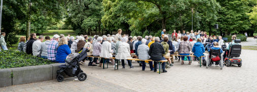 Zum wiederholten Mal hatten beide Kirchengemeinden an diesem Sonntag in den Freizeitpark zu einem Familiengottesdienst eingeladen. Auch würden danach wieder die „Spiele im Park“ stattfinden, so dass Jung und Alt (etwa 100 Personen) an diesem sonnigen Morgen den Weg in den Freizeitpark gefunden hatten, um gemeinsam mit dem Vorbereitungsteam des Ökumene-Ausschusses und dem Chor für Neues Geistliches Lied Gottesdienst zu feiern.